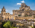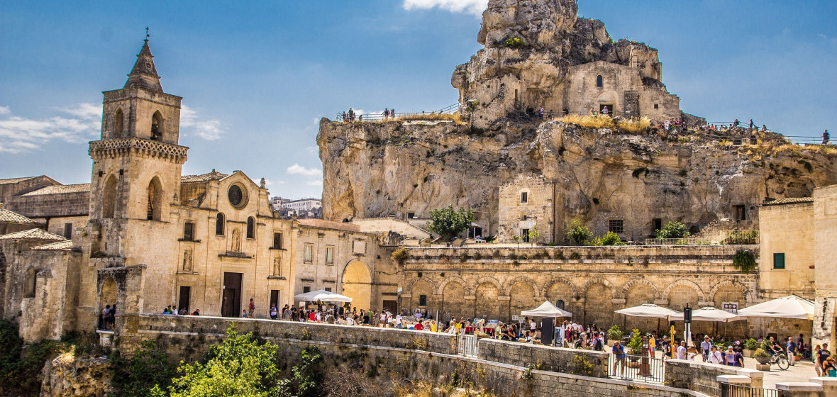 Matera is one of those places where every step feels like walking through history, with its ancient “sassi” cave dwellings now transformed into cosy hotels, restaurants, and cafes that glow golden under the bright blue sky. The dramatic 13th-century cathedral crowns the town from its ridge, dividing the historic centre and adding to the sense that you're wandering through a living museum. From romantic stays with stunning views to unforgettable sights like the Materasum Ipogeo, Tramontano Castle, and Casa Grotte di Vico Solitaro, it's easy to see why Matera earned its UNESCO World Heritage status — and even easier to fall under its spell.