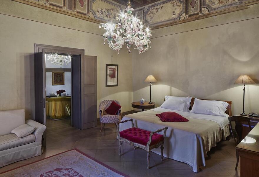 Traditional hotel from 19th century in city centre. Romantic rooms have chandeliers, high ceilings and antiques dotted throughout. Excellent authentic Italian cuisine in the restaurant and a lively wine bar. Historic, central and wonderful service.