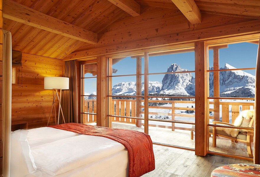 • L'Alpina Dolomites est un grand et luxueux hôtel contemporain, au design respectueux de l'environnement, qui comprend de nombreuses baies vitrées permettant d'admirer les vues spectaculaires sur les Dolomites. L'emplacement est idéal pour les skieurs : juste à côté de l'Alpe di Siusi, et il y a des installations pour skier et partir, ainsi qu'un spa haut de gamme et une collection de piscines - intérieures et extérieures. La décoration est élégante et le restaurant propose des produits locaux. 301 chambres et suites.