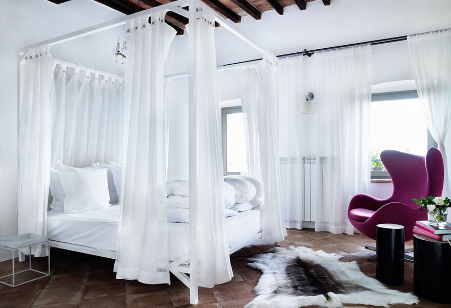 This hotel offers rustic-style private cottages in the Monte Peglia and Selva di Meana Park in Umbria. Inside, whitewashed walls and stone floors are set off by bright ceramics and local textiles. Head to the Zen spa for great valley views, the perfect place to relax and unwind.