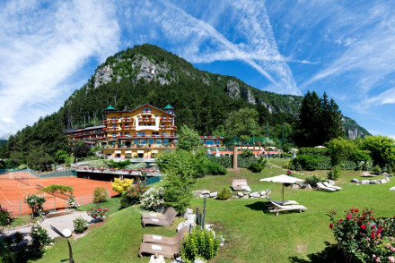 Chalet confortable dans un parc national. Les chambres sont accueillantes et de style alpin, avec des boiseries, des lits à baldaquin et des plafonds à poutres apparentes. Terrasses ensoleillées, spa, sauna et bain à remous. Le restaurant propose une cuisine tyrolienne variée. Idéal pour des vacances de ski tranquilles en famille.
