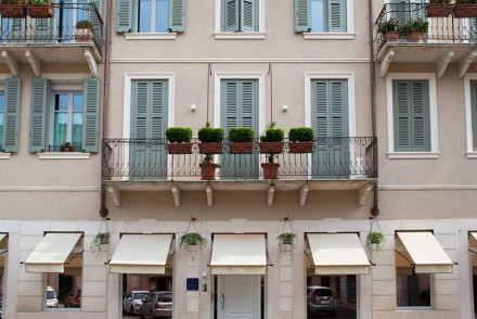 Stilvolles, diskretes "Straßenhotel" mit einem Code, mit dem Sie direkt von der Straße aus eintreten können, ohne die Rezeption aufsuchen zu müssen. Die fünf individuell gestalteten Zimmer sind wunderschön dekoriert mit aussagekräftigen Blumendrucken und erstklassigen Accessoires. Perfekt für romantische Rendezvous in der Stadt von Romeo und Julia