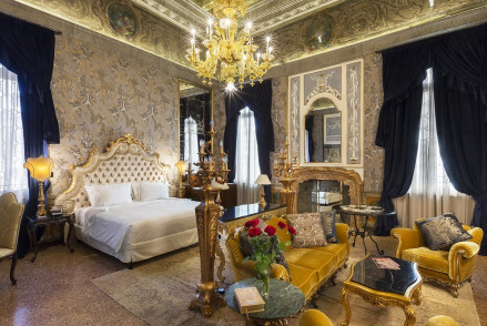 Brütende venezianische Romantik direkt am Canal Grande. Die subtil beleuchteten Zimmer und Suiten vereinen Boudoir mit Art Deco; Chaiselongues aus Samt, theatralische Vorhänge und opulente Betten. Ein ruhiger Ort, perfekt für eine Flucht zu zweit.