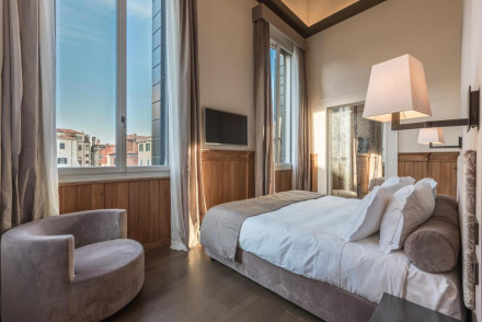 Ein umgebauter Renaissance-Palast in spektakulärer Lage, nur wenige Schritte von vielen der wichtigsten Sehenswürdigkeiten Venedigs entfernt. Die Zimmer präsentieren sich im zeitgenössischen Design. Die charakteristische Cocktailbar auf der Dachterrasse ist eine echte Attraktion, ebenso wie das Restaurant, das moderne venezianische Gerichte serviert.