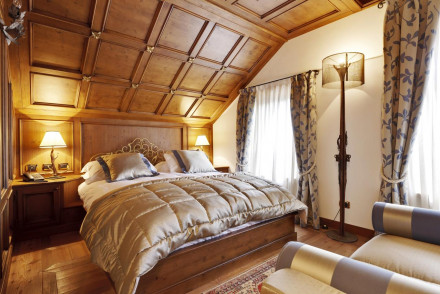 Ein prächtiges Chalet in den Dolomiten. Die luxuriösen Zimmer und Suiten (einige bieten Platz für 4 Personen) verfügen über riesige Betten, attraktive Möbel, allen Komfort und private Balkone. Erstklassige Wellness- und Schönheitsbehandlungen und eine fabelhafte mediterrane Küche. Ein besonderer Ort für ganzjähriges Bergsteigen.