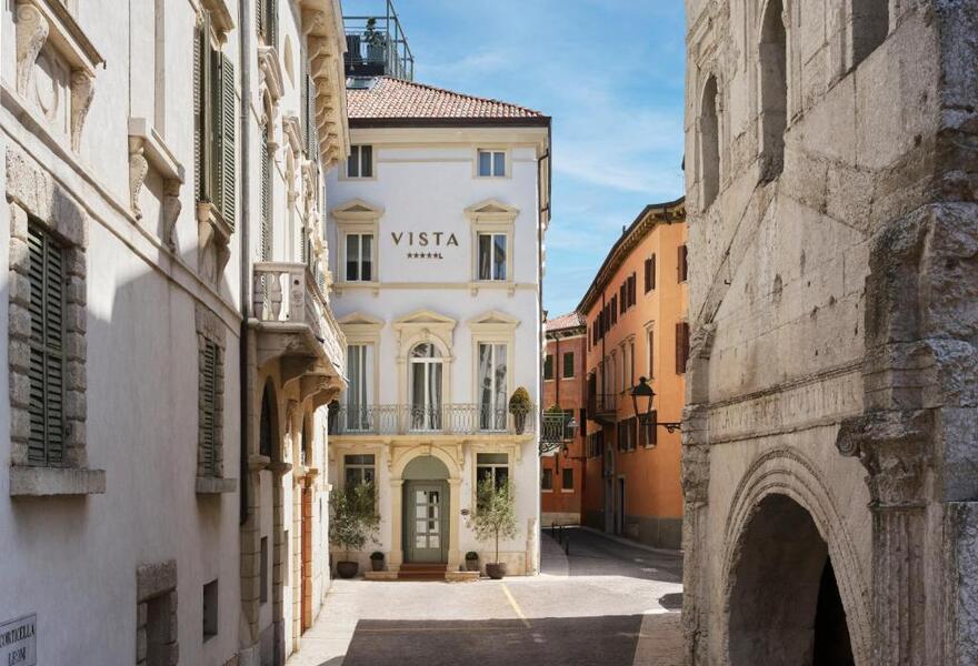 A boutique retreat offering a blend of history and modern elegance in the heart of Verona. The interiors boast chic, contemporary design with luxurious Italian furnishings, rich marble bathrooms, and tasteful artwork. There's a rooftop bar, gourmet dining, and a serene spa. An indulgent city escape.