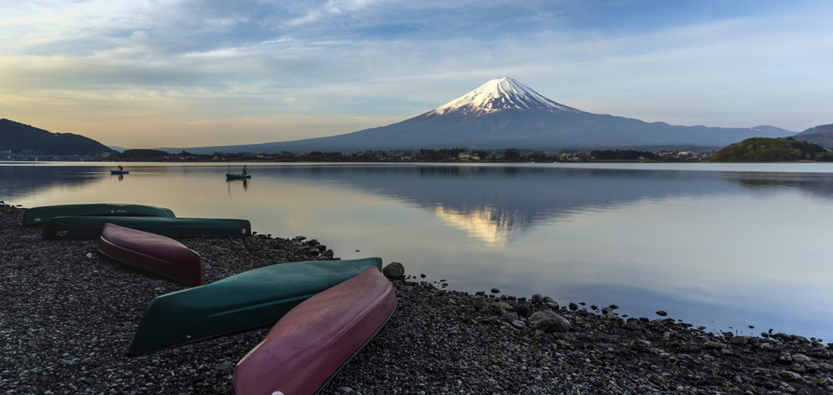 Fujikawaguchiko liegt malerisch am Ufer des Kawaguchiko-Sees mit dem berühmten Berg Fuji in der Ferne und ist ein wunderbares Thermalbad für einen aktiven Urlaub oder eine erholsame Auszeit. Mit dem Auto oder der Bahn weniger als zwei Stunden von Tokio entfernt, ist dies ein äußerst beliebtes Reiseziel in Japan. Egal, ob Sie zu zweit reisen oder mit Freunden und Familie unterwegs sind, die Unterkunftsmöglichkeiten in der Region bieten für jeden Geschmack und Geldbeutel etwas, von klassischen Ryokans bis hin zu schicken modernen Hotels. Die meisten der besten Unterkünfte in Fujikawaguchiko befinden sich direkt am Ufer des Sees - ein wirklich malerischer Ort für einen Urlaub.