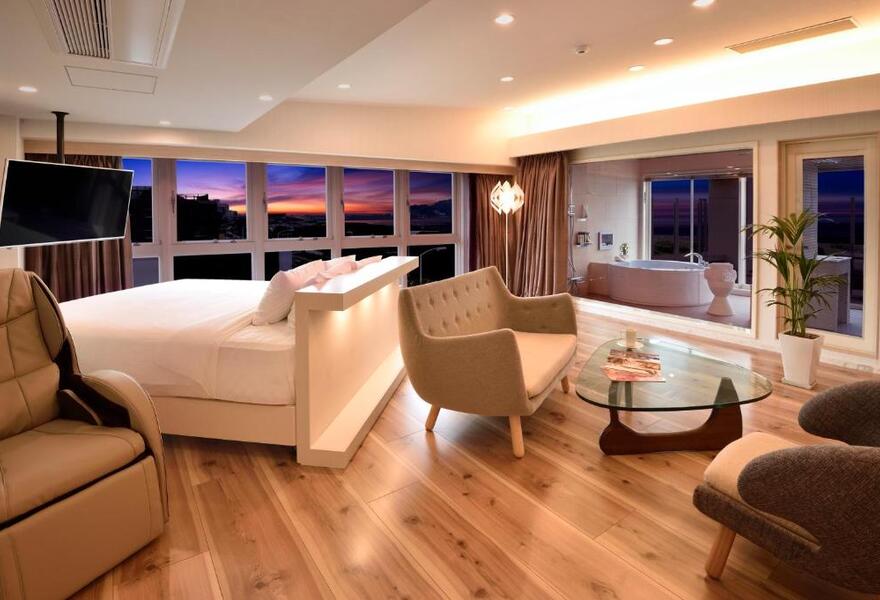 A stylish haven offering a tranquil escape, by the serene Katase shores. Inside, natural materials and panoramic ocean vistas create a harmonious vibe. With its healing Bad Gastein stones, spa treatments, and organic dining, relaxation is assured. It's the perfect spot for a rejuvenating stay.