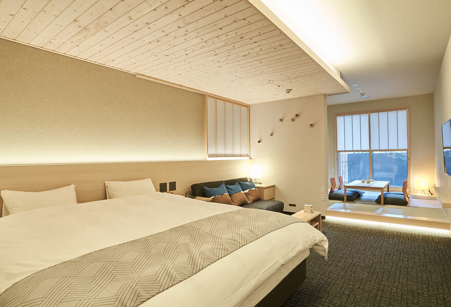 • Families - The Deluxe Family Room offers a mix of Japanese & Western style with double and single beds plus a raised space with tatami mats