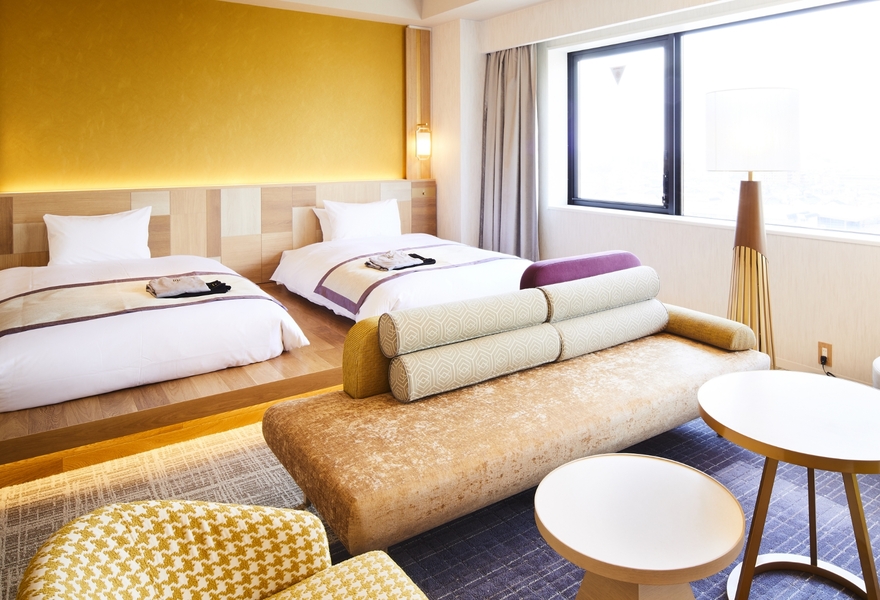 • Located near Kanazawa Castle, Hotel Intergate offers stylish rooms, a grand bath, and a vibrant lounge serving coffee, cocktails, and late-night snacks. A sleek, artistic base for local exploration.