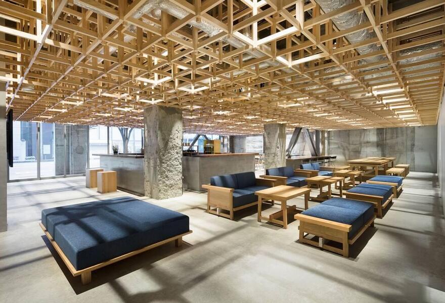 Good value and stylish industrial-look pad with clean lines and Western as well as Japanese-style bedrooms. Grey and blond wood palette with raised tatami floors set the tone, with bunk rooms for families. Concrete chic public areas include a tea room, a roof terrace for music and yoga, and a cafe.