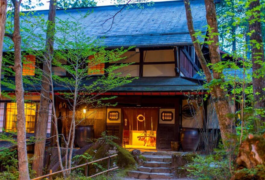 A stunning riverside ryokan set in original 160 year old thatched houses. Just eight individually designed, authentic rooms plus a traditional "irori" hearth sitting centre stage. There are two onsens on site (one rock, one cypress) and delcious, elaborate Kaiseki cuisine. Tradition at its best.