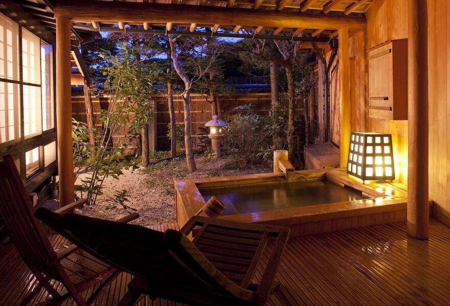 An adult-only ryokan situated between mountains and natural hot springs in Takayama. Stylish rooms offer beautiful simplicity with contemporary Japanese design and private baths. There's a lush garden with forest views, plus delicious in-room dining. The perfect grown-up stay in a tranquil setting.