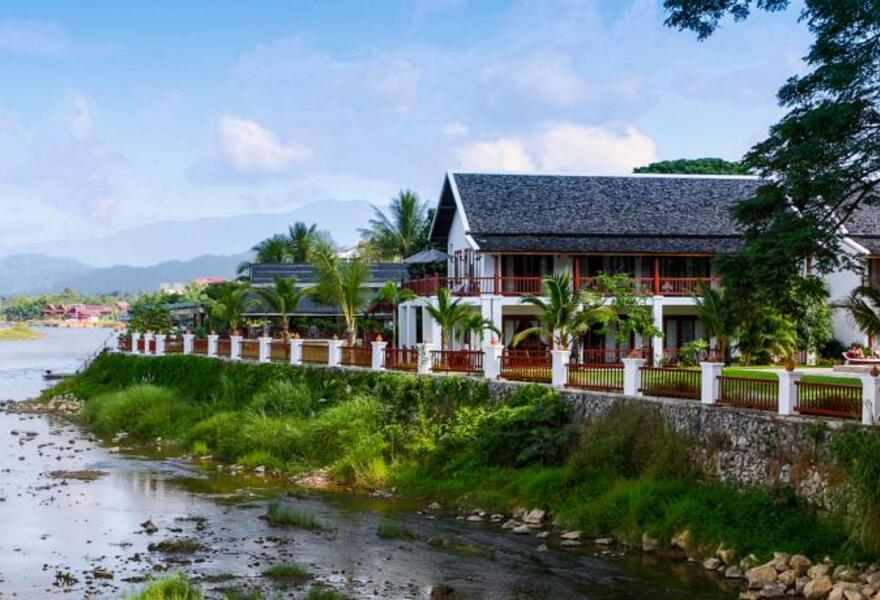 Riverside Boutique Resort ist ein idyllischer Rückzugsort am Ufer des Nam-Song-Flusses in Vang Vieng. Mit einladenden Gästezimmern, die die individuellen Traditionen von acht ethnischen Gruppen widerspiegeln, ist dies eine ruhige, durchdacht gestaltete Oase. Die besten Zimmer liegen nur wenige Schritte vom Pool entfernt und bieten magische Ausblicke, während das Restaurant du Crabe auf französisch-laotische Fusionsküche spezialisiert ist. Sehr romantisch.