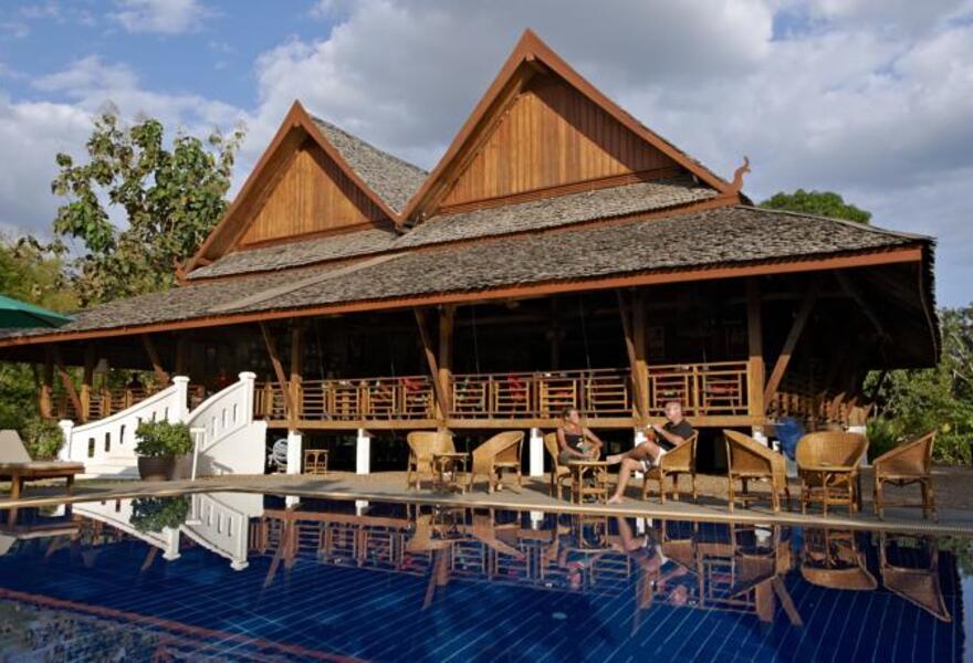 La Folie Lodge besteht aus 26 auf Stelzen erbauten Bungalows, die um einen erfrischenden Swimmingpool verteilt sind und traditionelle Innenräume mit laotischen Textilien und viel poliertem Holz aufweisen. Genießen Sie westliche und laotische Gerichte im Restaurant nach Vogelbeobachtungs-, Rad- und Kajakausflügen. Ein ruhiger Rückzugsort auf der Insel Don Daeng, nahe Champasak.