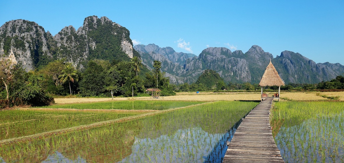 With jungle-clad limestone mountains rising through the morning mist, Vang Vieng is a dramatically picturesque part of the country. Once a party hotspot, this little community now has a reputation for rest and relaxation, inviting travellers to connect instead with the natural world. Guided hikes into the forest reveal ancient caves with blue-green lagoons and carefully preserved Buddha statues. The shrine at Phu Kham Cave is striking, as are the Tham Xang and Tham Nam Caves. Expect to find marvellous viewpoints, lovely waterfalls and peaceful natural pools for cooling dips on your travels, too.