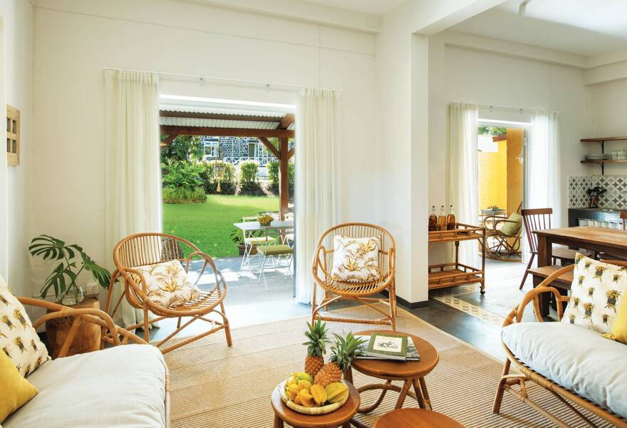 Bakwa Lodge, on Rodrigues' south coast, boasts beautiful sea views. It's also a wonderfully intimate hideaway with rustic, white-painted guest cabins oozing old-school charm. Think sliding doors revealing wooden decks shaded by craggy casuarina trees, excellent fresh seafood, and a laid-back vibe. The multi-bedroom villa is ideal for groups or families.