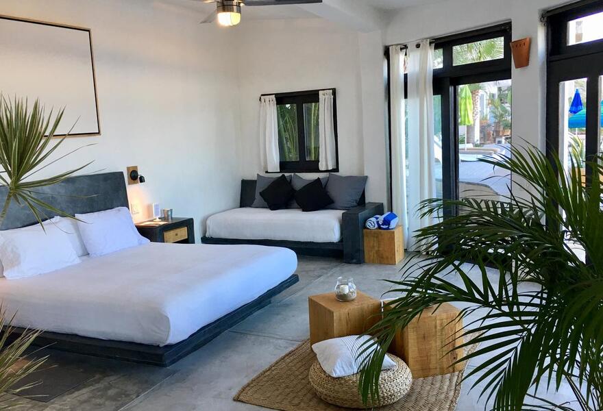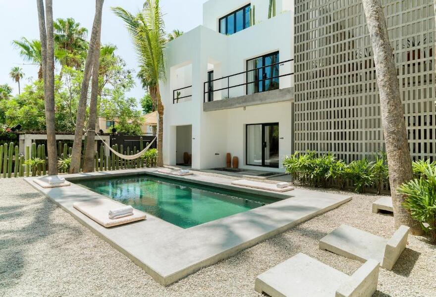 Un refuge de charme mêlant le minimalisme industriel aux textures du désert et aux touches artisanales, dans le quartier artistique de San José del Cabo. Le béton poli, les murs en plâtre blanc et le mobilier artisanal local créent une esthétique à la fois brute et raffinée. Détendez-vous au bord de la piscine, sirotez des cocktails à base de mezcal ou explorez la côte de Baja.