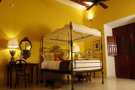 A glorious combination of mustard yellow ruins and chic contemporary design all set in utterly tranquil surrounds. Traditional rooms are colonial in style with high beamed ceilings, black and white tiled floors, four-posters and whirring fans. A superb spa and atmospheric restaurant. Bliss.
