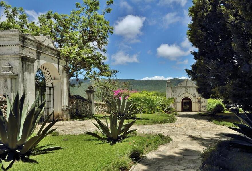 Ein perfektes historisches Gebäude inmitten üppiger Gärten. Die traditionellen Zimmer verfügen über schwer drapierte Himmelbetten, dunkle antike Möbel, freiliegendes Mauerwerk und kühle Fliesenböden. Das Hotel verfügt über einen ruhigen Pool, ein eigenes Museum und ein weitläufiges Gelände, das zum Erkunden einlädt. Nur wenige Minuten von den Maya-Ruinen entfernt. Ländliche Glückseligkeit.
