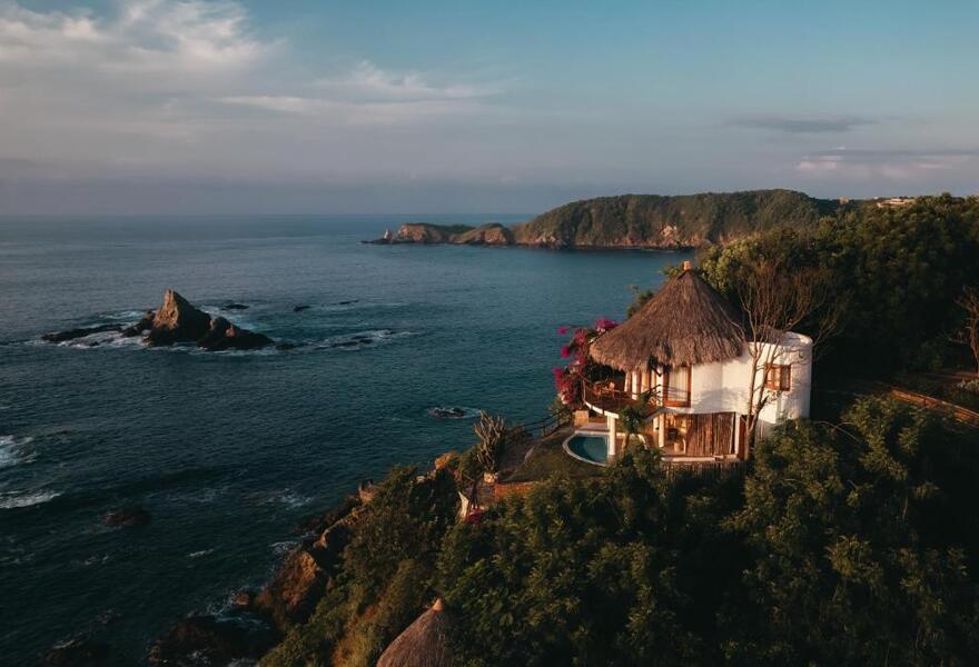 Cet hôtel de Mazunte offre une échappée sereine le long de la côte pacifique. Décorée dans un style mexicain contemporain, l'ambiance est décontractée et chaleureuse, avec des matériaux naturels et des vues sur l'océan. Les clients peuvent profiter de séances de yoga, d'un restaurant de type "farm-to-table" et d'excursions privées sur la plage. Idéal pour les amoureux de la nature.