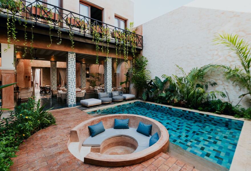 Eine charmante Villa aus dem 19. Jahrhundert neben der Kathedrale im Zentrum von Mérida. Klassische Architektur aus der Kolonialzeit verschmilzt mühelos mit modernem Design zu einem visuellen Genuss. Es gibt ein Restaurant, das lokale Küche serviert, sowie einen idyllischen Außenpool und einen schönen Innenhofgarten. Ein verstecktes Juwel.