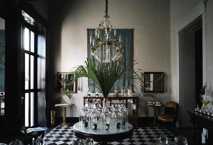 Eine majestätische Ein-Zimmer-Boutique über einer berühmten Parfümerie im Centro Histórico von Mérida. In dieser luxuriösen Suite mit Balkon und Blick auf den Innenhof werden Sie sich wie ein König fühlen. Sie ist vergoldet und glitzert, ohne übertrieben zu wirken. Das Café und die Bar sind entspannt und haben Pariser Flair. Hervorragend.
