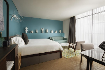 Diese atemberaubende minimalistische Kreation ist das Ergebnis der Arbeit von zehn renommierten Architekten. Frisches Weiß auf Weiß, Glas von der Decke bis zum Boden und Marmorböden schaffen luftige Räume. Das Hotel strahlt ein exklusives Gefühl aus, von der Bar und dem Pool auf dem Dach bis hin zum luxuriösen Spa und den trendigen Restaurants. Elegant und schick.