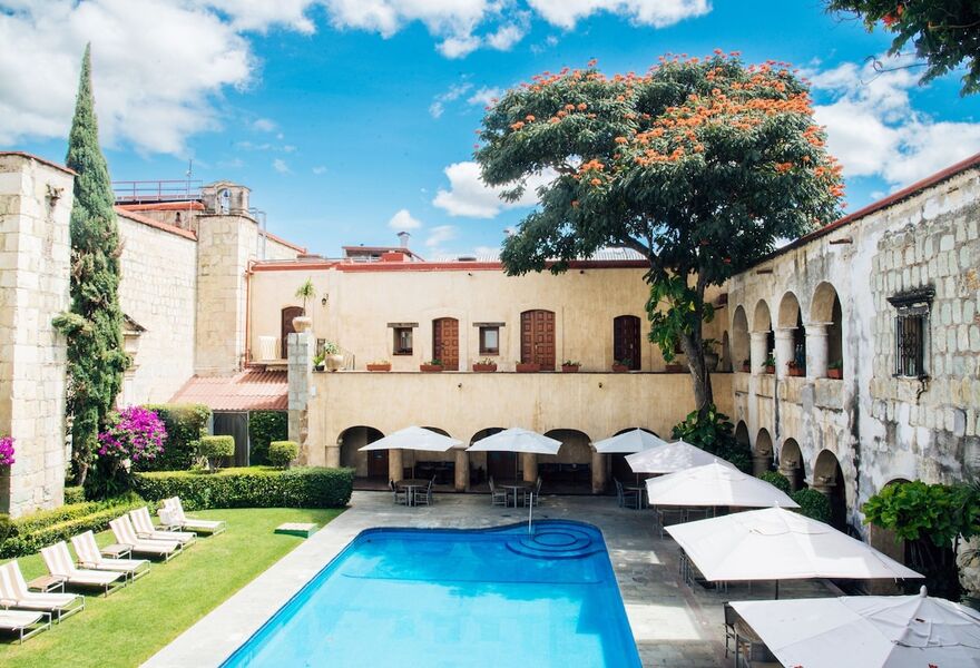Ein kleines Fünf-Sterne-Hotel in einem gehobenen Viertel im historischen Oaxaca. Diese traditionelle Hacienda hat viel von ihrem ursprünglichen Charme bewahrt, mit sichtbaren Balken, Antiquitäten und einer hübschen Veranda. In den weitläufigen tropischen Gärten befindet sich ein Pool, zudem gibt es ein Spa und ein regionales Restaurant. Ein authentischer Rückzugsort.