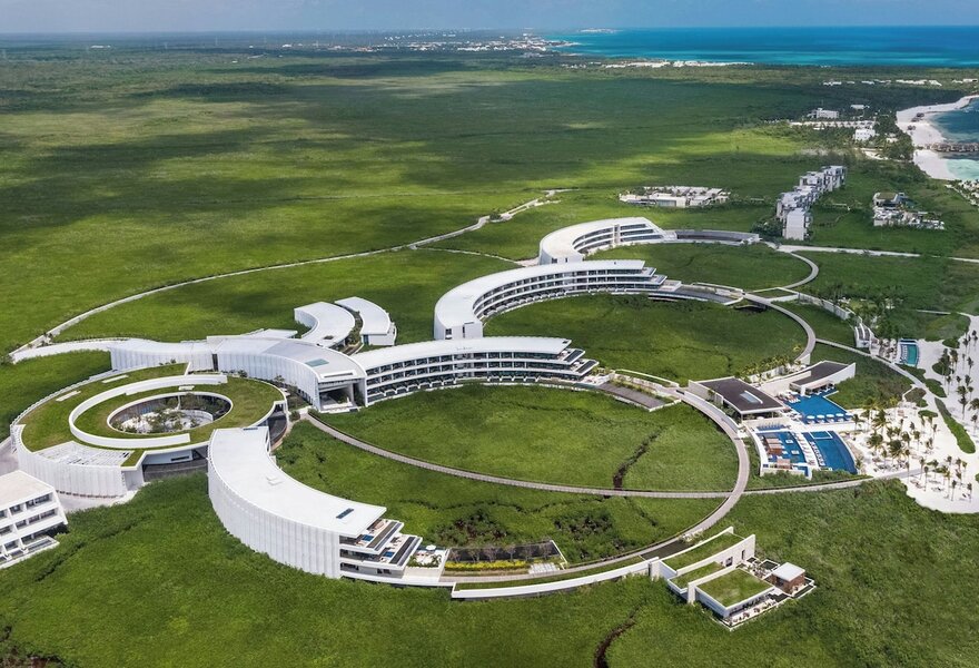 A luxurious all-inclusive resort in Playa del Carmen, blending modern comforts with nature’s beauty. The design highlights earthy tones and natural materials, creating a serene retreat. Guests can enjoy multiple dining options, a wellness centre, and outdoor adventures. A peaceful escape.