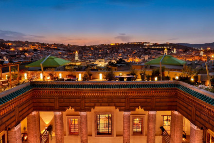 A lovingly restored riad in the heart of historic Fez. Rooms, situated around a pretty central courtyard, keep their traditional features yet have a chic contemporary feel with large glass windows and white washed walls. A stunning rooftop boasts spectacular city views. A tranquil city base.
