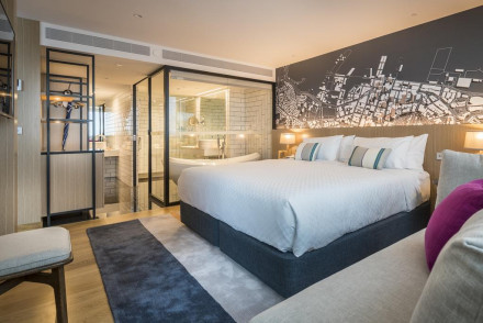 A minimalist urban hotel in Auckland's CBD, two minutes from the SkyCity Casino. With light spacious rooms in muted tones and views across the city or harbour, this is a good business or holiday choice. Facilities include a restaurant, gym and rooftop space with cocktail bar.