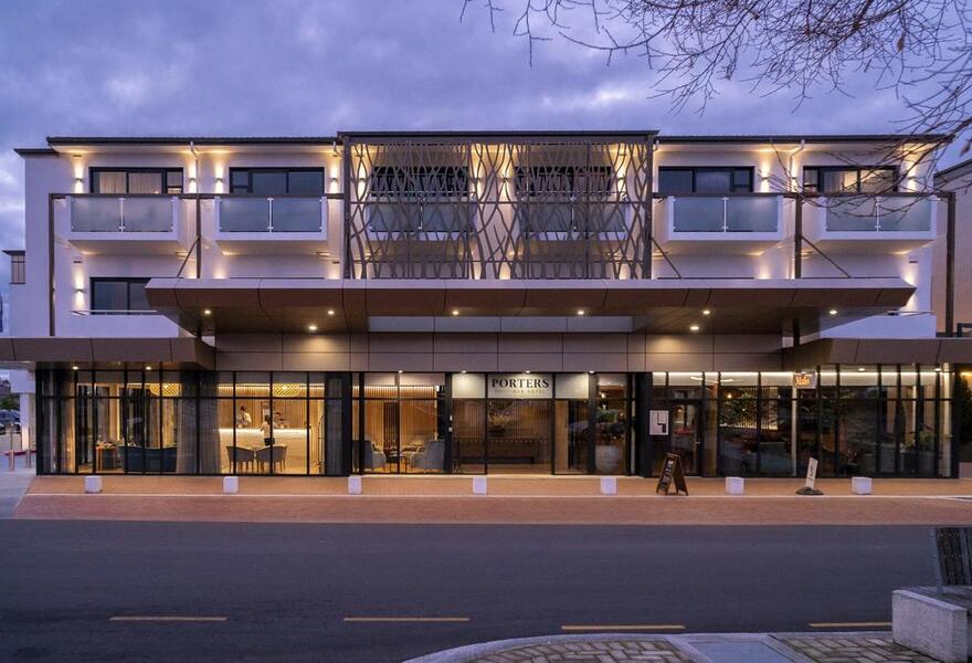 • Porters Boutique Hotel offers modern rooms and suites in a glass-fronted building, set in Havelock North. Stay here for the smart, slick vibe, the excellent location — ideal for exploring the Hastings and Hawke's Bay area — and the fantastic food. Kick back with a glass of wine in the bar, or feast with friends at the laid-back bistro.
