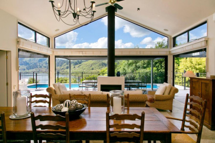 Two superb multi-bedroom villas in 58 acres of verdant grounds on the shores of Lake Taupo. Built in 2002 on land owned by one family for 80+ years, these are warm, welcoming contemporary spaces for family or group trips. Facilities include private pools, tennis courts, kayaks, croquet & boat ramps.
