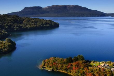 Luxurious lodge on a private peninsula on the shores of Lake Tarawera with stunning views to White Island, New Zealand's only active marine volcano. Suites are large and neutral in colour, with chic furniture and spa-like baths. Activities include outdoor thermal baths, fishing and lake swimming.