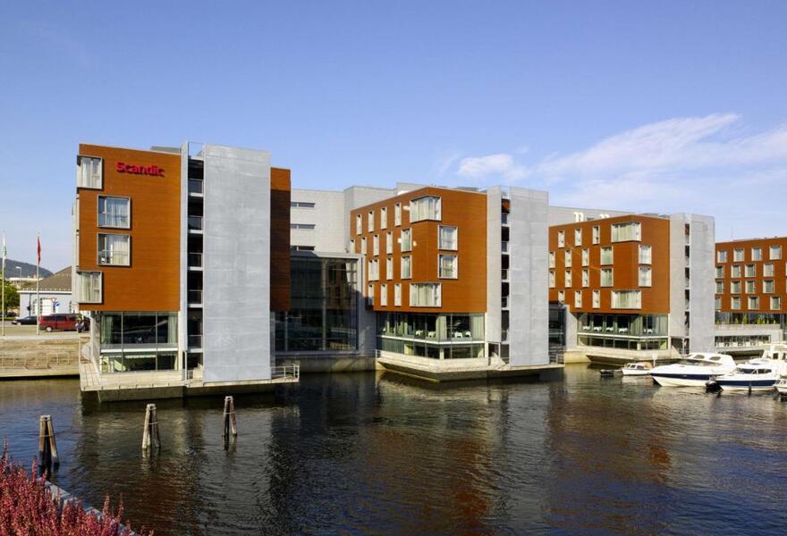 Ein elegantes, modernes Hotel mit Blick auf den Fluss Nidelven, nahe dem trendigen Viertel Solsiden. Die Zimmer reichen von Einzelzimmern bis hin zu Suiten und sind alle stilvoll mit großen Fenstern, übergroßen Kopfteilen und moderner Kunst ausgestattet. Ein preisgekröntes Frühstück und ein ganztägiges Restaurant runden das Angebot ab. Ein schicker Ausgangspunkt für die Erkundung der Stadt.