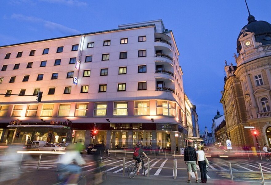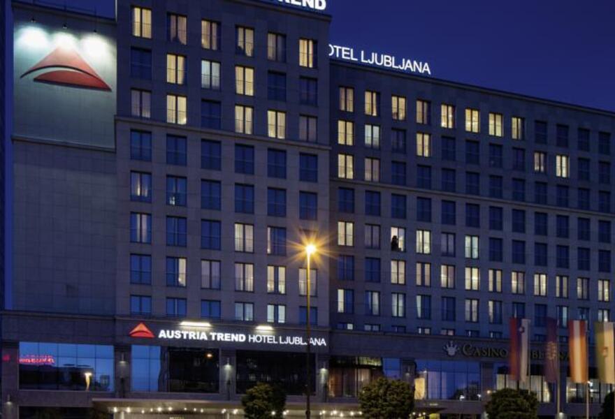 A sleek, 20-floor hotel just steps from Ljubljana’s Old Town, offering modern luxury with sweeping city views. Chic interiors blend contemporary design with Slovenian accents, creating a stylish yet welcoming vibe. Guests can enjoy fine dining, a rooftop terrace, and a spa with skyline views.