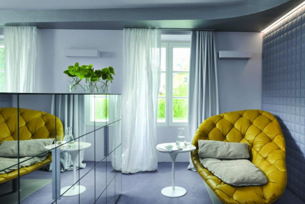 Le dernier hôtel de luxe de la ville dans un bâtiment historique serein. Trois types de sauna, trois bars et un jardin. Chambres et suites spacieuses et élégantes avec parquet, mobilier en bois riche et murs blancs. Des installations d'affaires uniques - vous pouvez même emprunter un bureau. Très sophistiqué.