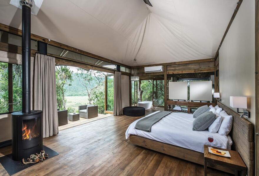 Séjour cinq étoiles au cœur du célèbre parc national des éléphants d'Addo. Détendez-vous dans le cadre somptueux de votre tente de style colonial au son des plaines. Le dîner aux chandelles est le summum du luxe - tout le confort de la créature est pris en charge. Une piscine accueillante (le propre point d'eau de l'hôte) permet de se détendre.
