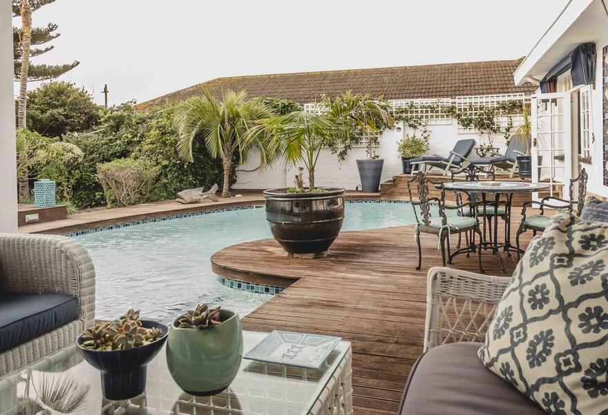 Vous serez bien entouré dans ce B&B géré par le propriétaire, à quelques pas des plages immaculées de Jeffrey's Bay. Chacune des cinq suites est décorée dans un style méditerranéen avec d'opulentes têtes de lit capitonnées et des salles de bains avec des baignoires à roulettes. Un superbe petit déjeuner est servi chaque matin. Belle piscine.