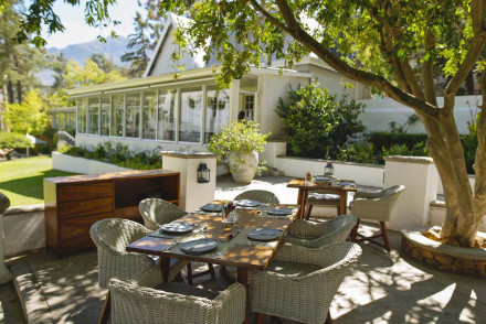 Les locaux s'y pressent pour le brunch, le déjeuner et le dîner, tandis que les touristes se bousculent pour trouver une chambre. Vingt-et-une chambres décorées de façon colorée sont dotées d'une superbe tapisserie et, pour certaines, d'une piscine privée. L'établissement propose trois restaurants gastronomiques et bien d'autres encore à proximité. Un des grands favoris de Franschhoek.