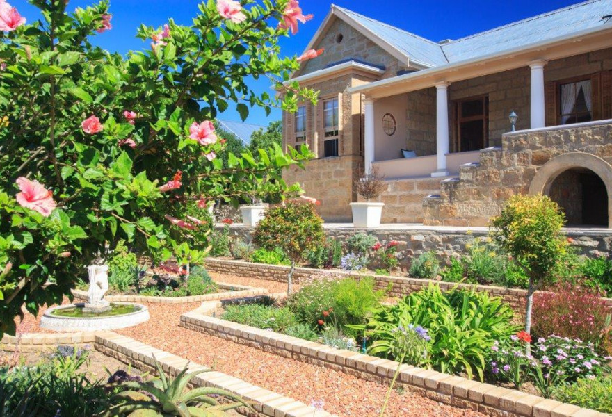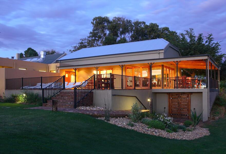 Luxurious country lodge at the foothills of the Langeberg Mountains yet within walking distance of nearby restaurants. Large rooms open up onto private terraces or enjoy mountain views. There's a sparkling pool, massage facilities, plus an indulgent English breakfast is served each morning.