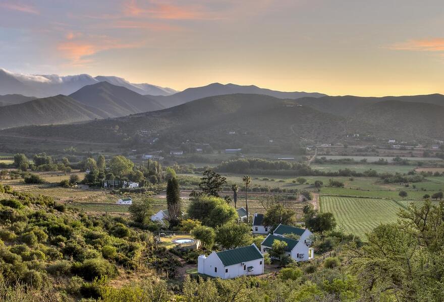 Stay on this traditional working farm, located in the heart of the Little Karoo. Nestled in the foothills of the Swartberg Mountains it provides plenty of outdoor activities. Quaint and comfortable rooms, manicured gardens including two pools, provides a charming base from which to explore.