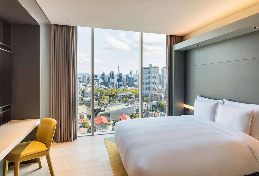 Ein Hauch von pulsierendem Luxus im Herzen von Seoul. Die Innenräume sind schick und modern eingerichtet und strahlen Kreativität aus - zum Beispiel mit Originalkunst und zeitgenössischem Mobiliar. Zu den außergewöhnlichen Einrichtungen gehören trendige Restaurants und stilvolle Bars. Perfekt für alle, die einen energiegeladenen und doch anspruchsvollen Aufenthalt suchen.
