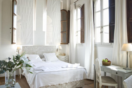 An 18th Century Sacristy now a stylish boutique in the heart of Seville's historical quarter. Effortlessly elegant rooms, featuring painted wood head boards and chic shutters, face out to a cloistered courtyard. The perfect quiet hideaway location in the lively central area of Old Town, Seville.
