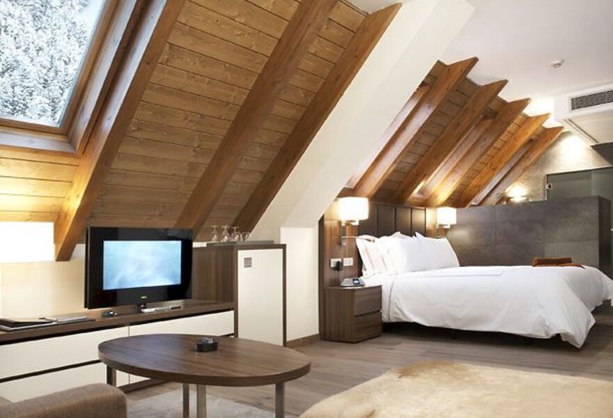 Hôtel luxueux situé à 50 mètres des remontées mécaniques. Grand salon confortable pour se détendre autour d'un verre, spa haut de gamme et bain à remous extérieur pour soulager les membres fatigués. Les chambres sont de style contemporain avec beaucoup de bois apparent pour une ambiance alpine. Plusieurs choix de restaurants, dont un spécialement conçu pour les enfants !