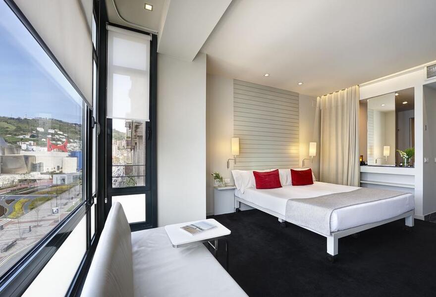Ein fabelhaftes, modernes Designhotel gegenüber dem Guggenheim und in der Nähe des Flusses. Die eleganten, modernen Zimmer und riesigen Suiten sind mit allem Komfort ausgestattet und bieten eine fantastische Aussicht. Ausgezeichnetes Tapas-Restaurant, Spa, Fitnessstudio und Tagungsräume. Eine sehr stilvolle Wahl.