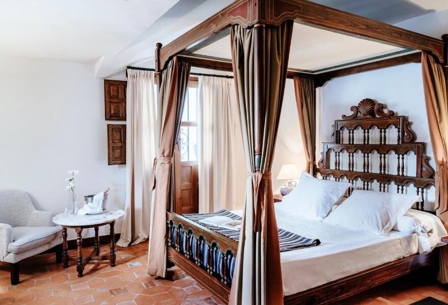 Located in the historic town of Guadalupe, this hotel is set in a beautifully restored 15th-century complex. The atmosphere blends Moorish architecture with medieval charm, highlighted by white-walled rooms and peaceful gardens. With a pool, terraces, and regional cuisine, it's a serene retreat.