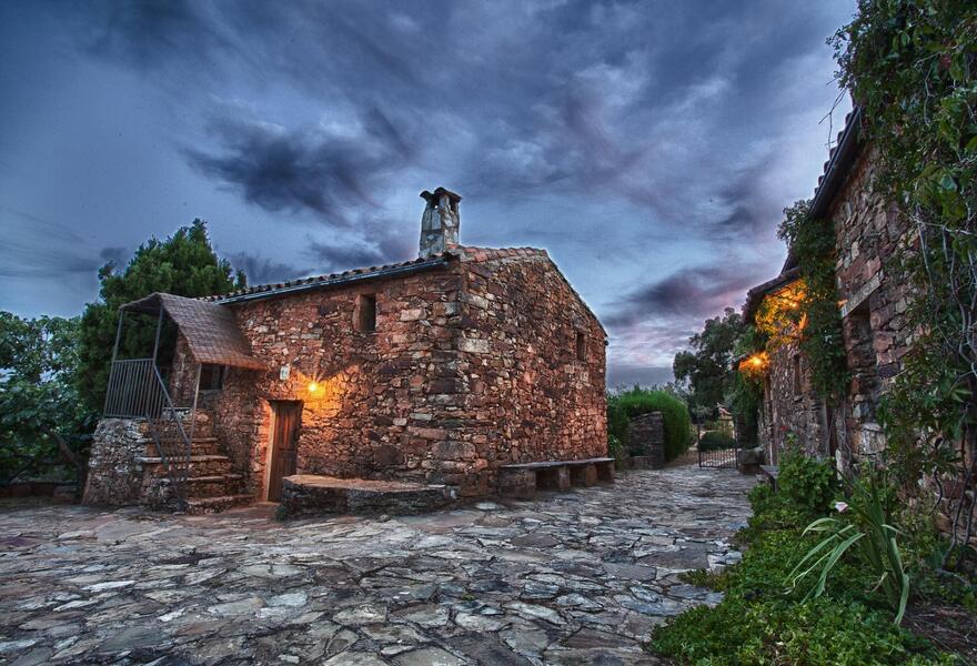 Restored hamlet in rural Spain on the border with Portugal. Five separate self-contained houses with high beamed ceilings, open fires and antique furnishings. With an outdoor swimming pool, horse riding, cooking courses and great walks on 130 hectare farm. Authentic, rustic and utterly charming.