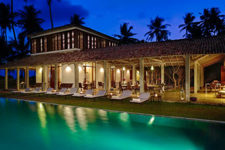 A lovely villa with elegant guest rooms featuring capacious four-posters & modern bathrooms. The huge infinity pool, surrounded by sun loungers and sofas, overlooks a stretch of sandy beach. A tasty European and Sri Lanka menu is served and the feel is appealingly relaxed and laid-back.
